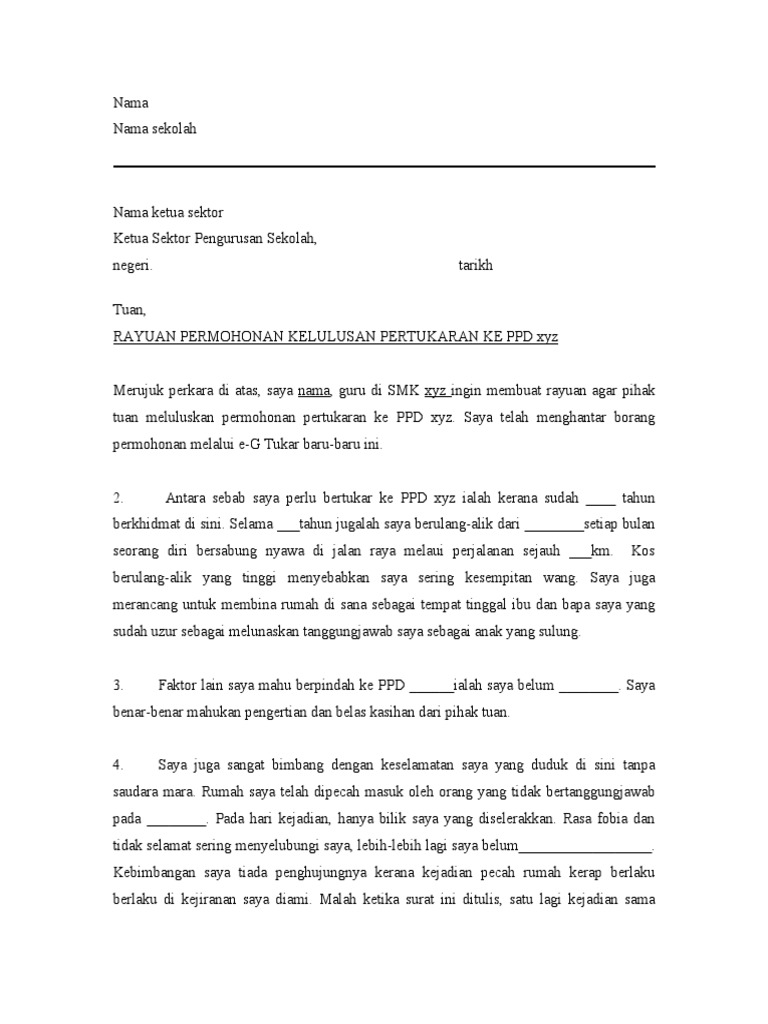 Buat 1 salinan surat rayuan pertukaran untuk simpanan anda sendiri. Contoh surat permohonan pembatalan pinjaman rumah lppsa. Surat Permohonan Pertukaran Sekolah d4pq3xrx1vnp.